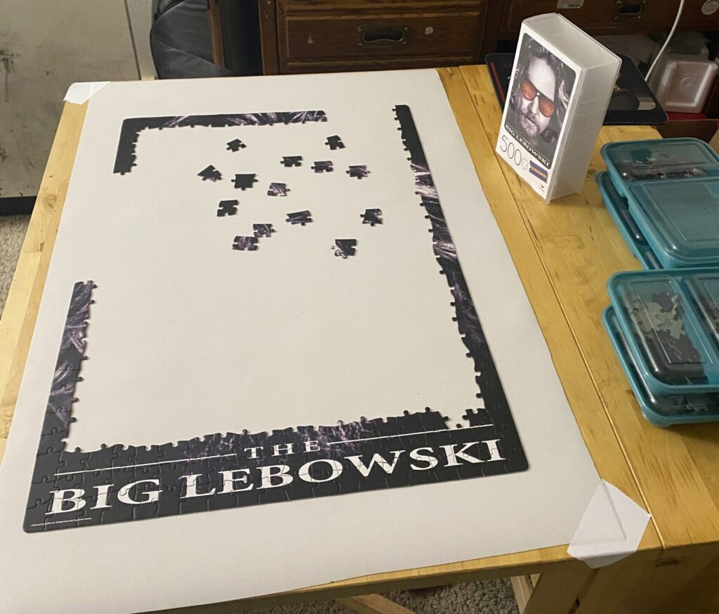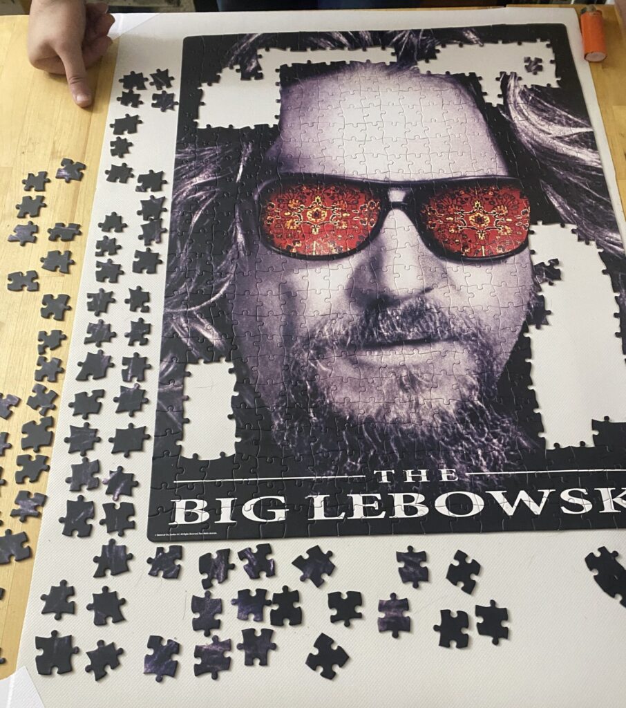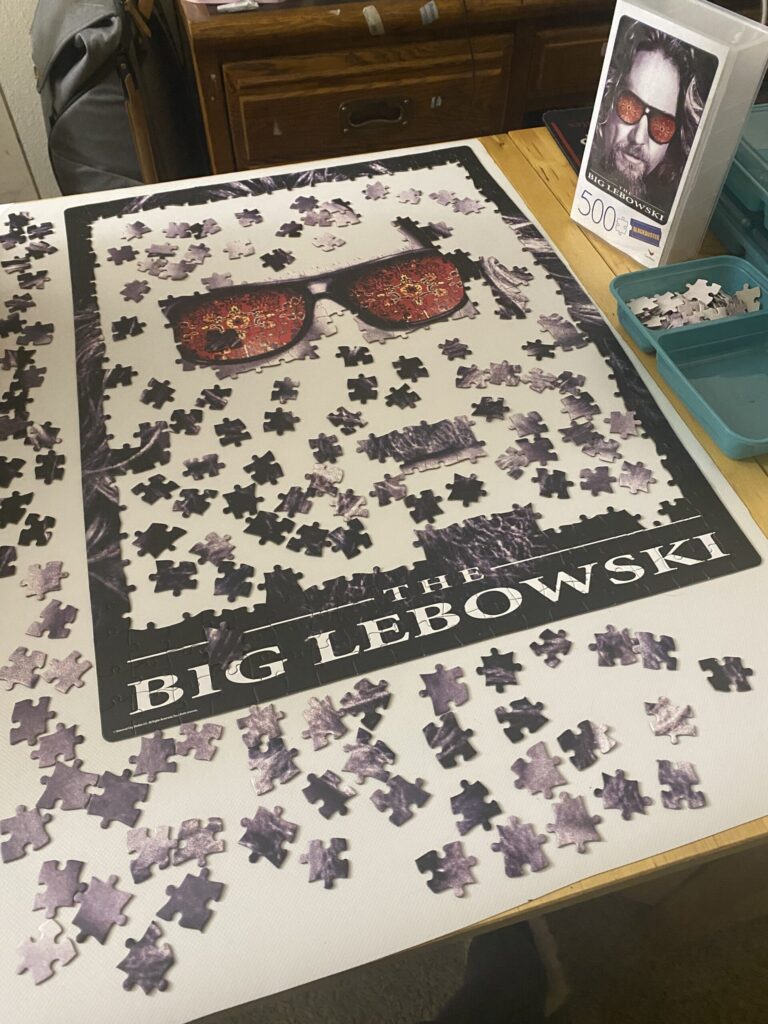 I recently made an impulse buy when I found a 500-piece puzzle of “The Big Lebowski” for just $10. It had been a decade or two since the last time I had put a puzzle together. My partner and I set up a small table in a spot safe from our cats, knowing this project might take several sessions to complete.